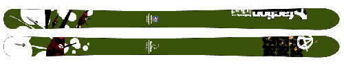 For the first season we produced one model, available in 175 and 185cm lengths, with a different bitching graphic for each length. The smaller size is perfect as a park and all-mountain ski for medium ability/height guys or big-mountain ski for advanced women skiers, while the 185 is the big-mountain ski for advanced male skiers.